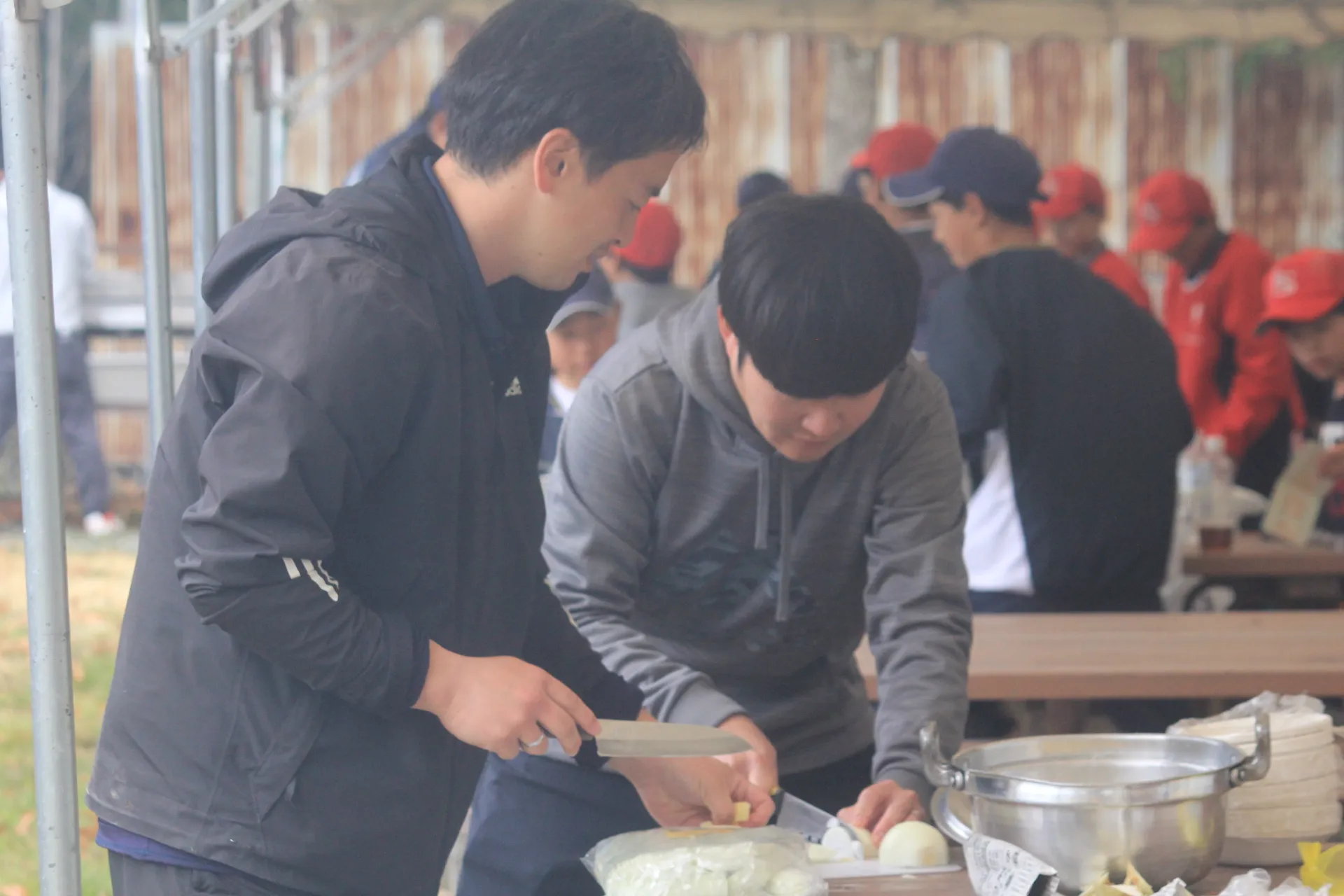 午後からはあいにくの雨となりましたが、体育館や会議室を活用し、室内でのトレーニングやミーティングを実施。